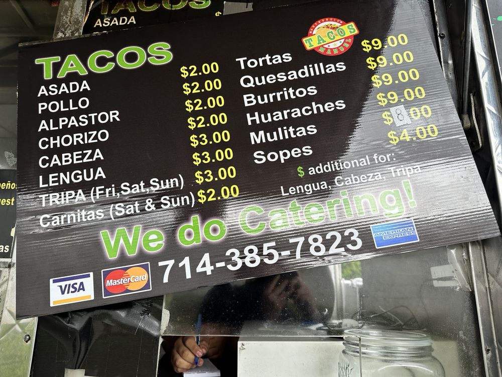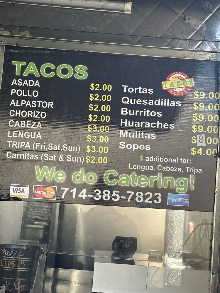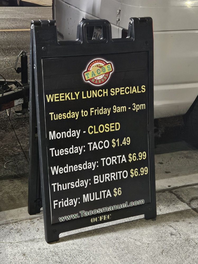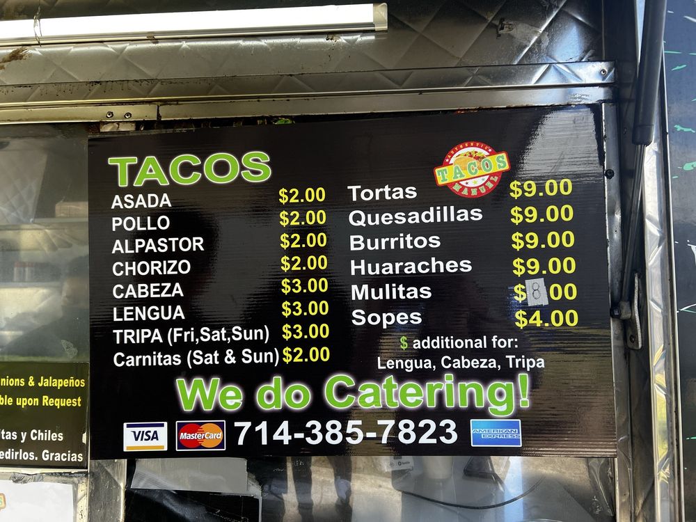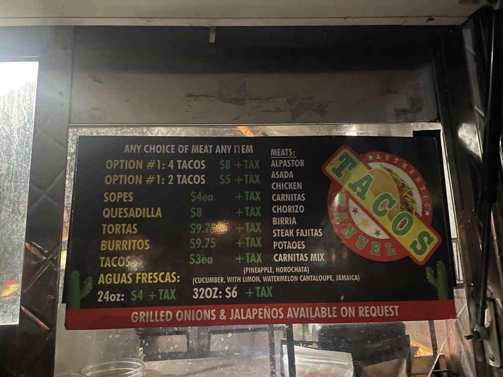 Tacos Manuel, located in Santa Ana, CA, is a hidden gem of a taco truck offering delicious Mexican food. Customers rave about the $2 tacos, packed with flavorful meat and topped with fresh onions and cilantro. The red salsa is a standout, evoking childhood memories with its distinct taste. The staff is quick and efficient, and prices are reasonable. The al pastor and carne asada tacos are juicy and well-seasoned, while the quesadilla is generously filled with meat and cheese. The avocado salsa is a must-try, adding a creamy kick to every bite. Although seating is limited, the quality of the food makes up for it. Tacos Manuel is a must-visit for authentic, affordable Mexican cuisine.
